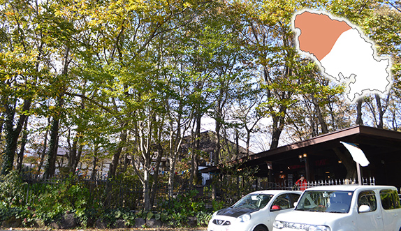 那須連山の主峰茶臼岳を望み、観光施設が立ち並ぶエリアです。温泉郷として名高い湯本には、殺生石などの史跡もあり、観光名所となっています。オシャレなカフェや飲食店、ショップがあり、イベントも多く開催されるなど、シーズン中は観光客で賑わいます。避暑地として開発されてきた別荘地が森の中に点在し、移住者も多く住んでいます。